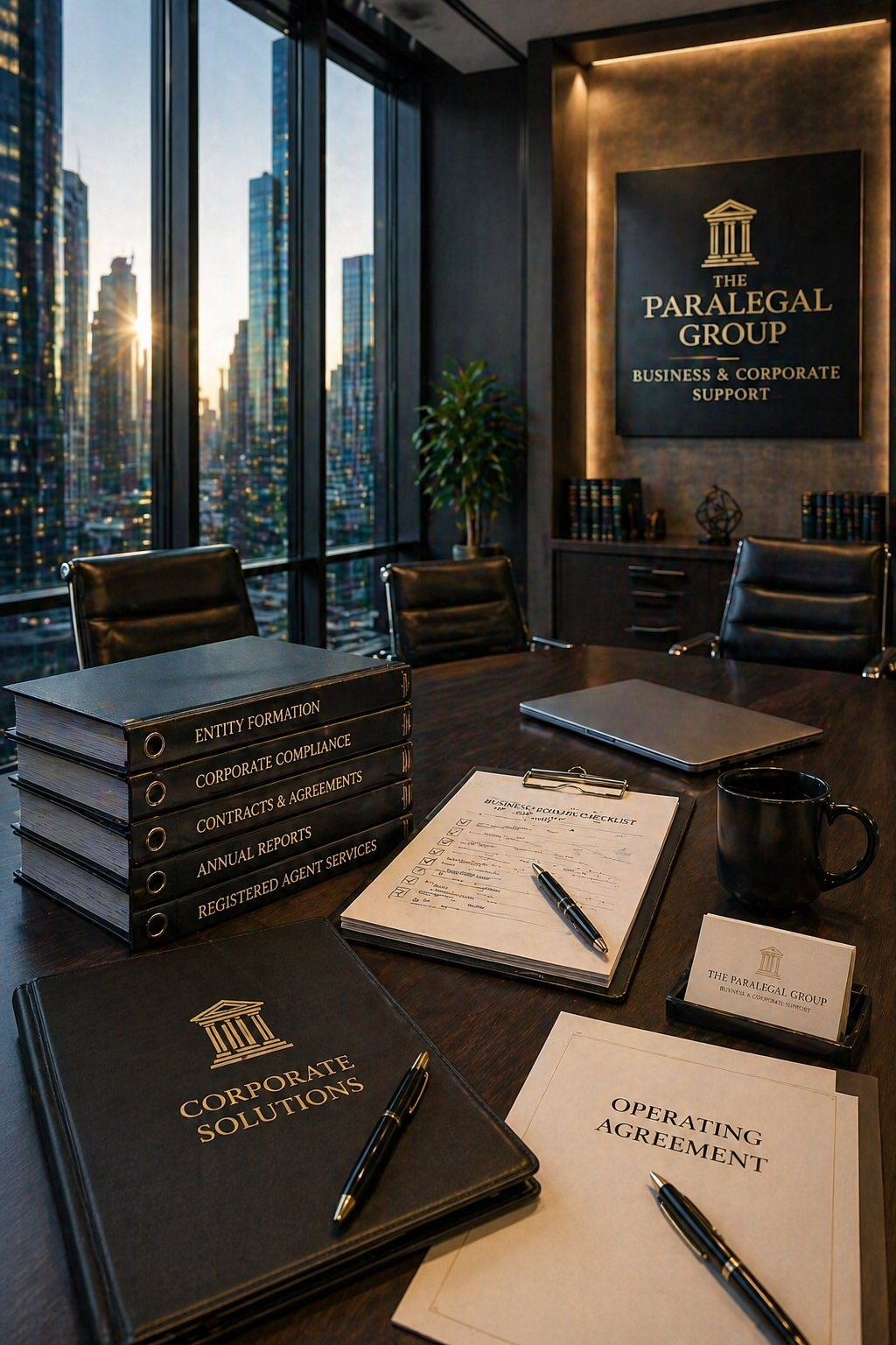 The Paralegal Group provides attorney-directed corporate and business support services designed to assist law firms with entity formation, compliance, and ongoing corporate documentation needs.